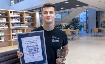 Student Wydziału Budowy Maszyn i Lotnictwa, lider zespołu PRz Racing Sebastian Rosół otrzymał nagrodę specjalną za zaangażowanie w prace badawczo-rozwojowe i nieprzeciętne osiągnięcia w tym obszarze.