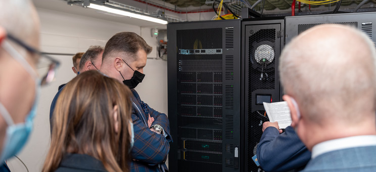 Minister Przemysław Czarnek przebywał z wizytą na Politechnice Rzeszowskiej, gdzie m.in. obejrzał nową serwerownię, która powstała dzięki dofinansowaniu ze środków Ministerstwa Edukacji i Nauki. Nasza uczelnia otrzymała środki na inwestycję pn. „Budowa Serwerowni” w wysokości 11 200 000 zł. Całkowita wartość tej inwestycji to 13 174 000 zł.