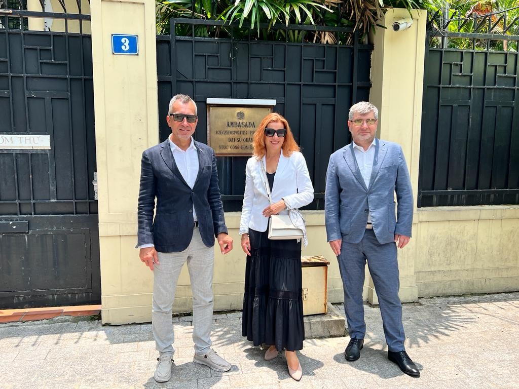 Ważnym punktem wizyty było spotkanie z Justyną Pabian, Chargé d’Affaires ad interim, kierownik Wydziału Polityczno-Ekonomicznego Ambasady RP w Wietnamie, podczas którego omówiono kierunki działań Politechniki Rzeszowskiej dotyczące współpracy międzynarodowej w zakresie związanym z rozwojem nauki, badań i kształcenia studentów. Była to też znakomita okazja do zaprezentowania potencjału naukowo-badawczego i infrastruktury naszej uczelni. Nawiązano również do ubiegłorocznych obchodów rocznicy urodzin patrona Politechniki Rzeszowskiej Ignacego Łukasiewicza, podkreślając fakt wynalezienia lampy naftowej, której replikę wręczono J. Pabian. Poruszono również kwestie związane z wnioskowaniem o wizy studenckie. Pozytywną weryfikację kandydatów powinna ułatwić rozmowa kwalifikacyjna w języku polskim oraz ich znajomość kultury i geografii Polski.